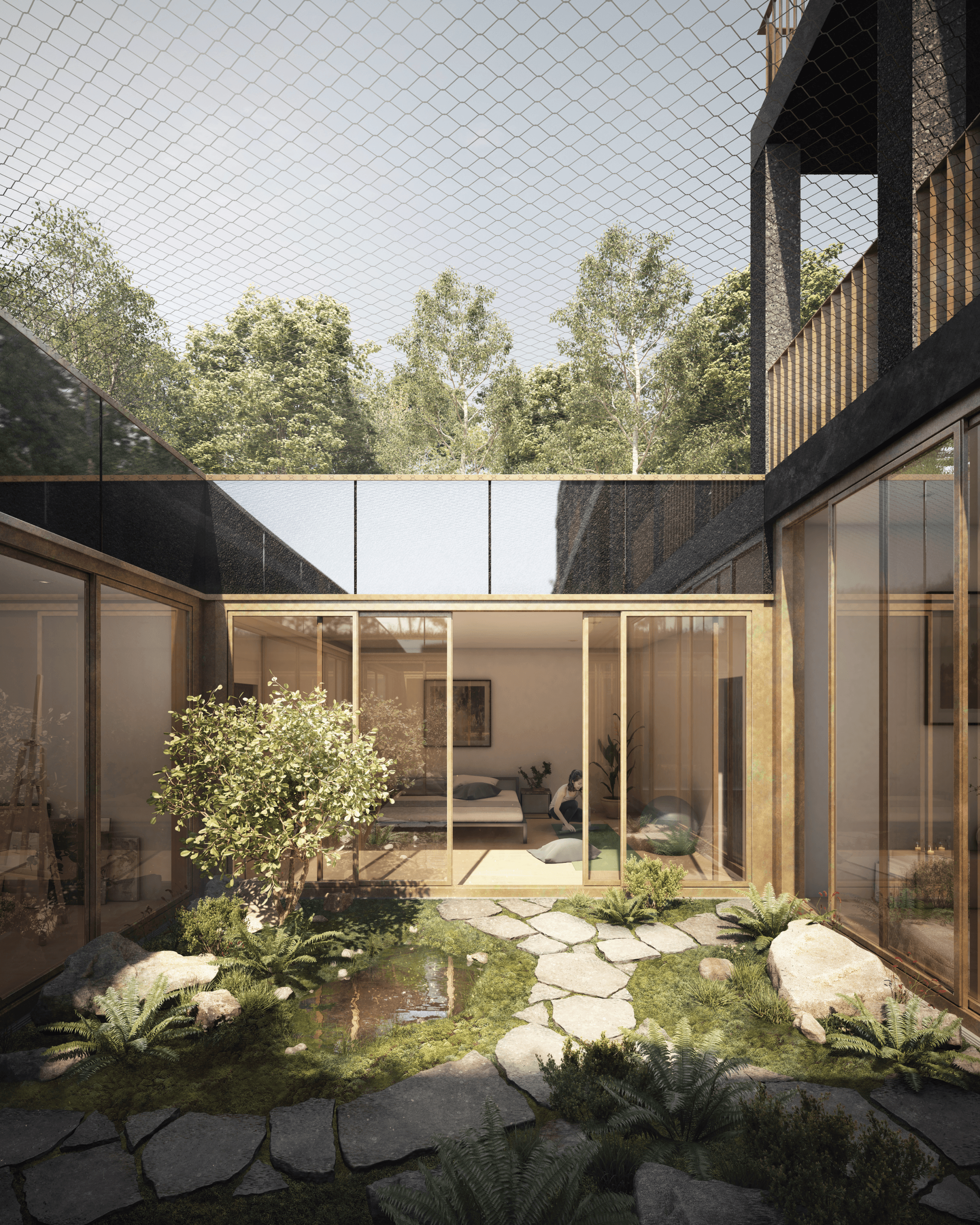 Die besondere Herausforderung dieses Projektes: die Schaffung von hochwertigen Wohnraum mittels großzügiger Tiefhöfen traf bei den genehmigenden Behörden auf Bedenken vor dem Präzedenzfall.