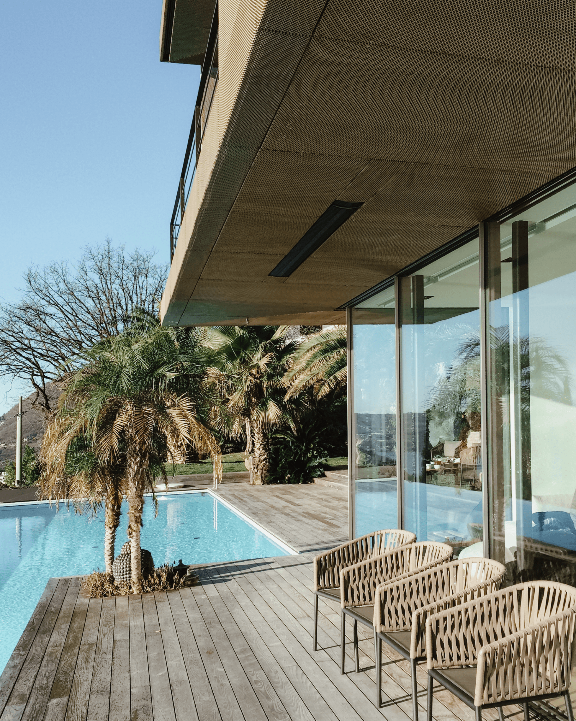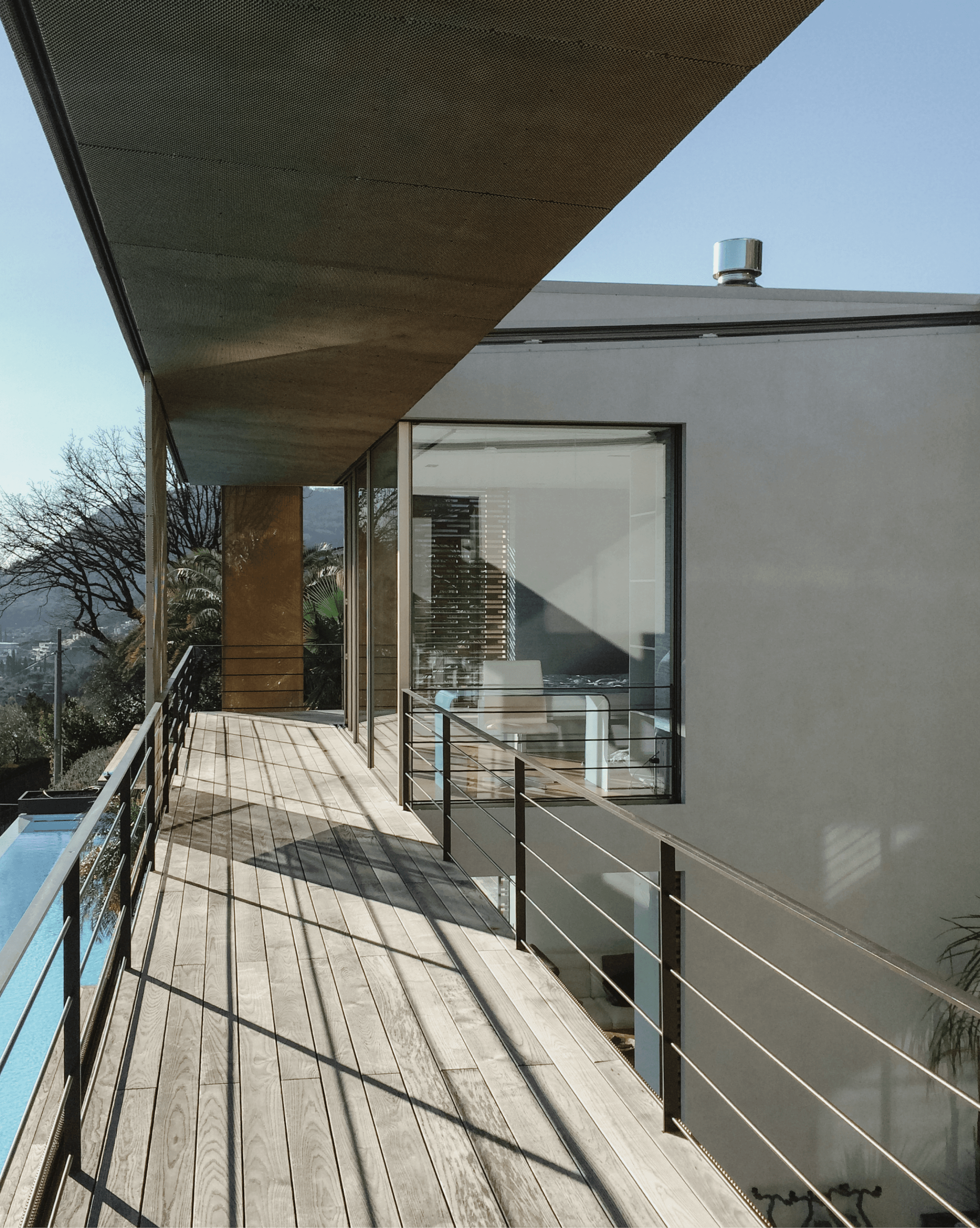 Ein Ort mit einem Olivenhain: in 1996 erwarb mein Bruder ein über 3.000 qm großes Grundstück oberhalb von Gardone mit einem grandiosen 180° Blick über den Gardasee. Es folgten viele Jahre der Baurechtschaffung zusammen mit studio Armellini und einige Entwürfe des Architekturbüro Wöhr, um den Vorstellungen des Bauherrn gerecht zu werden. In 2008 wurden die von uns entworfenen Ferienhäuser durch das Büro Fabi mittels einer Design-Studie überarbeitet und die obere Villa erhielt die aus Streckmetall (Messing) charakteristische Spange, welche als Aufenthaltsfläche und dem passiven Sonnenschutz dient.