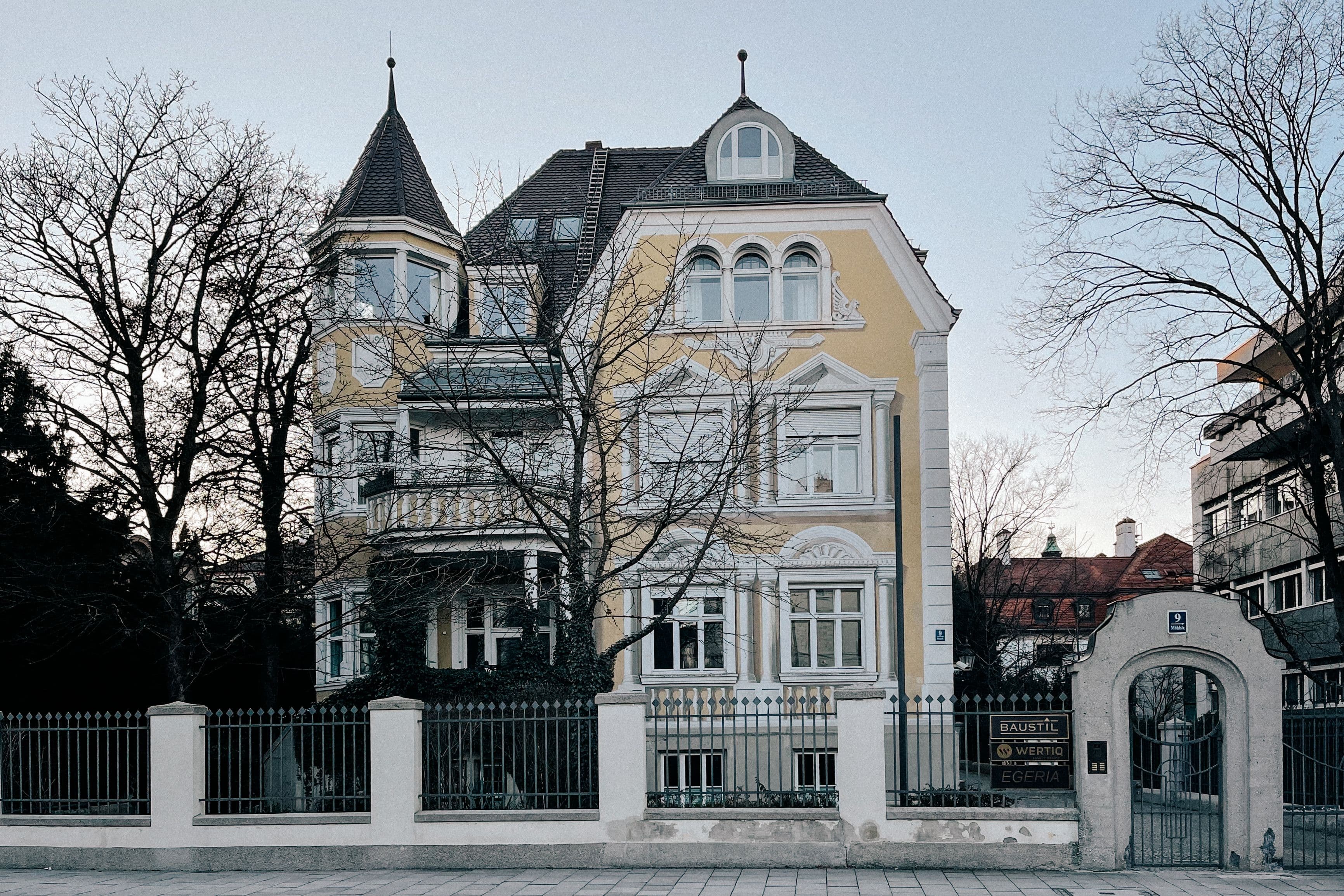 Ein Ort mit unserem Büro: in der prestigeträchtigen Möhlstraße im Münchner Stadtteil Bogenhausen erwarb das Ehepaar Dres. Wöhr GbR eine denkmalgeschützte Villa (Bj. 1906) von bemerkenswerter architektonischer Eleganz, welche eine behutsame Erweiterung durch einen harmonisch integrierten Anbau erhalten sollte. Der von uns entworfene Neubau umfasst ein Souterrain, ein repräsentatives Hochparterre sowie ein zurückgesetztes Terrassengeschoss. Der Bestand konnte mittels An- und Umbau um ca. 280 qm nutzbare Fläche für Gewerbe und Wohnen erweitert werden. Bis 2020 belegte unser Architekturbüro das Souterrain.